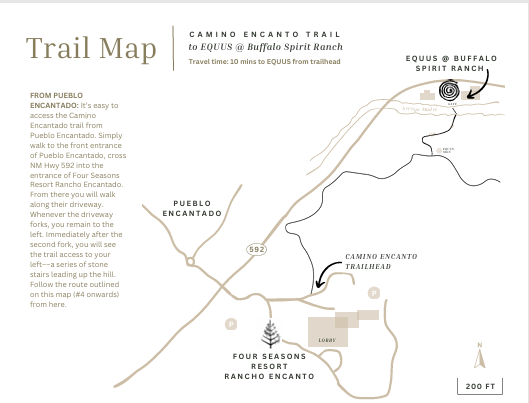 Staying at the Four Season’t Resort Rancho Encantado or Pueblo Encantado? We are a 10 minute walk along the beautiful Camino Encantado Trail - view the map here. (Please contact us ahead of time so that we will be expecting you.)